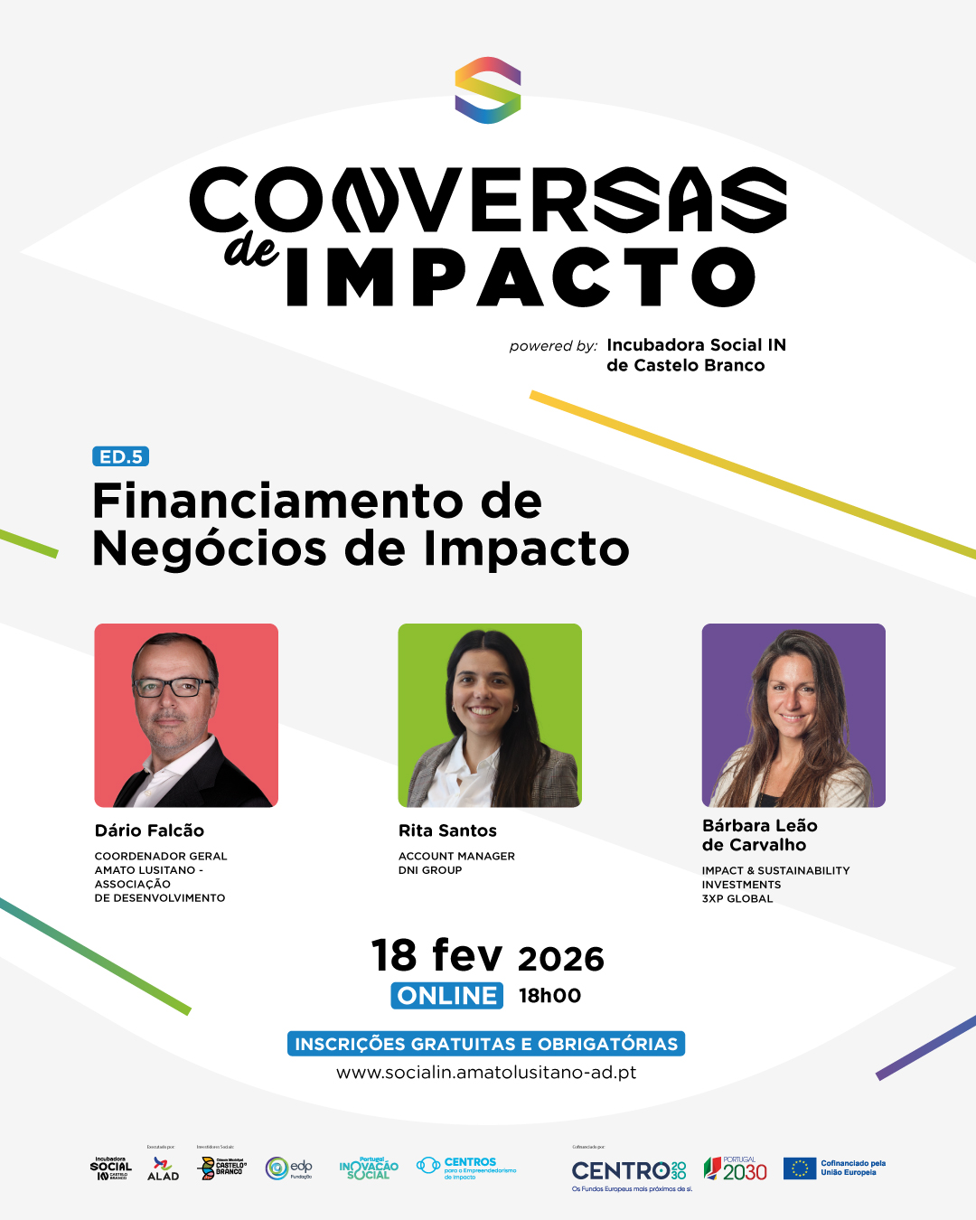 O ciclo Conversas de Impacto, promovido pela Incubadora Social IN de Castelo Branco, regressa para a sua quinta edição, continuando a capacitar e sensibilizar a comunidade para o empreendedorismo e a inovação social. Esta sessão propõe uma reflexão inspiradora sobre Financiamento de Negócios de Impacto, explorando caminhos, desafios e oportunidades para quem quer criar mudança social sustentável.