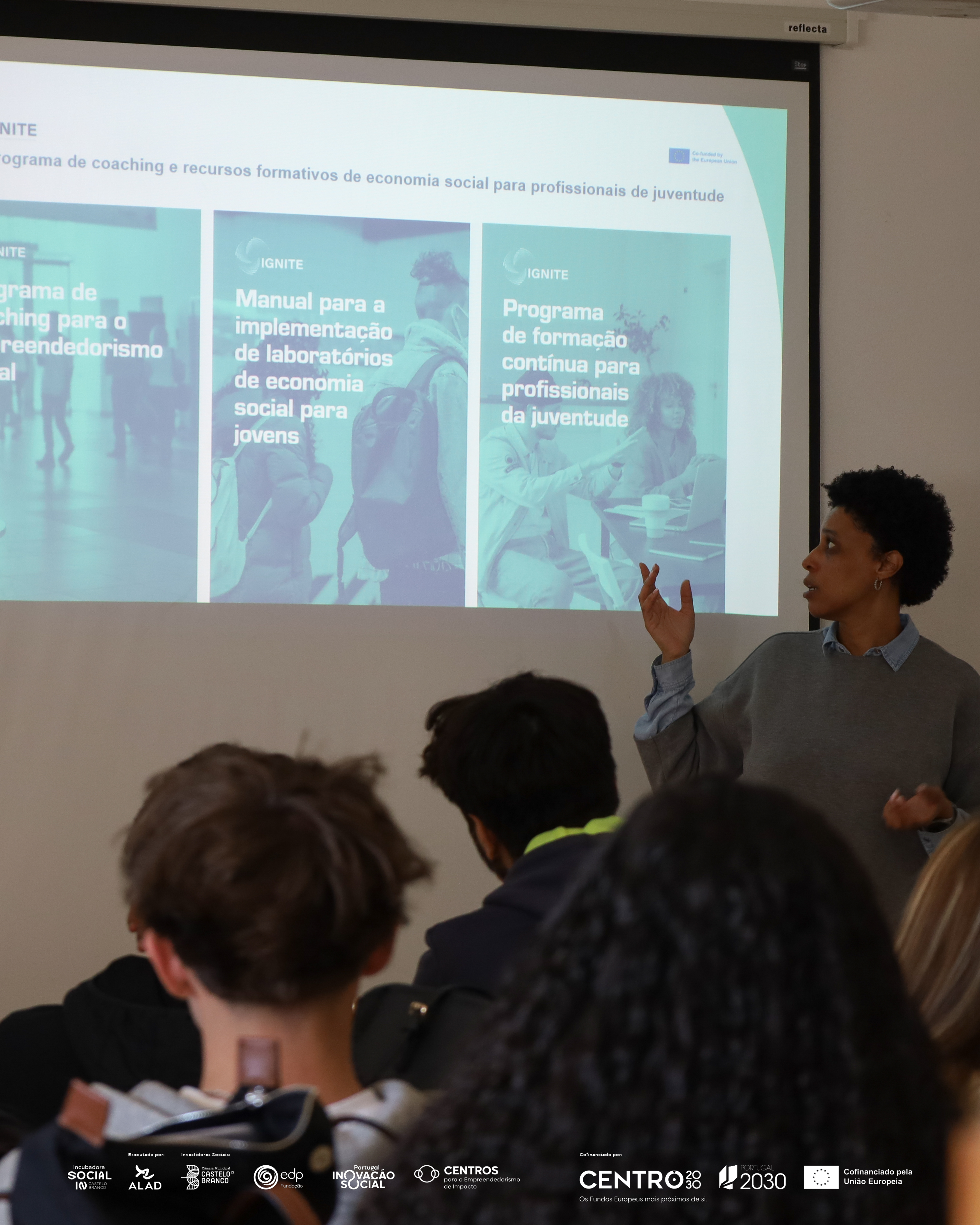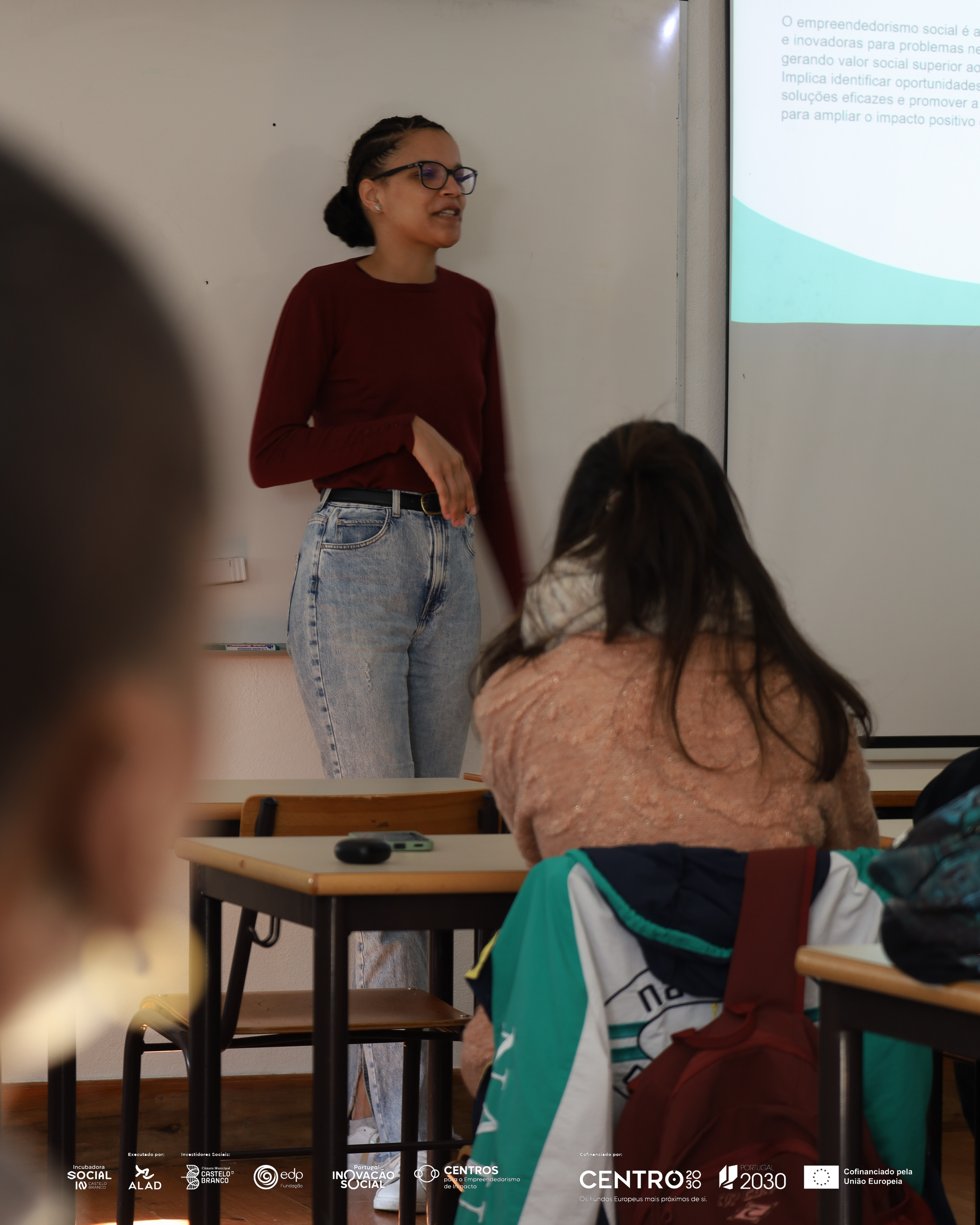A atividade reuniu 24 alunos e alunas, que ao longo da manhã de 26 de novembro participaram em vários momentos dedicados à descoberta do empreendedorismo social e à criação de soluções de impacto. O programa integrou uma apresentação sobre o trabalho da Incubadora Social IN, o enquadramento do projeto europeu IGNITE e uma oficina participativa onde os/as jovens desenvolveram ideias para responder a desafios sociais.
